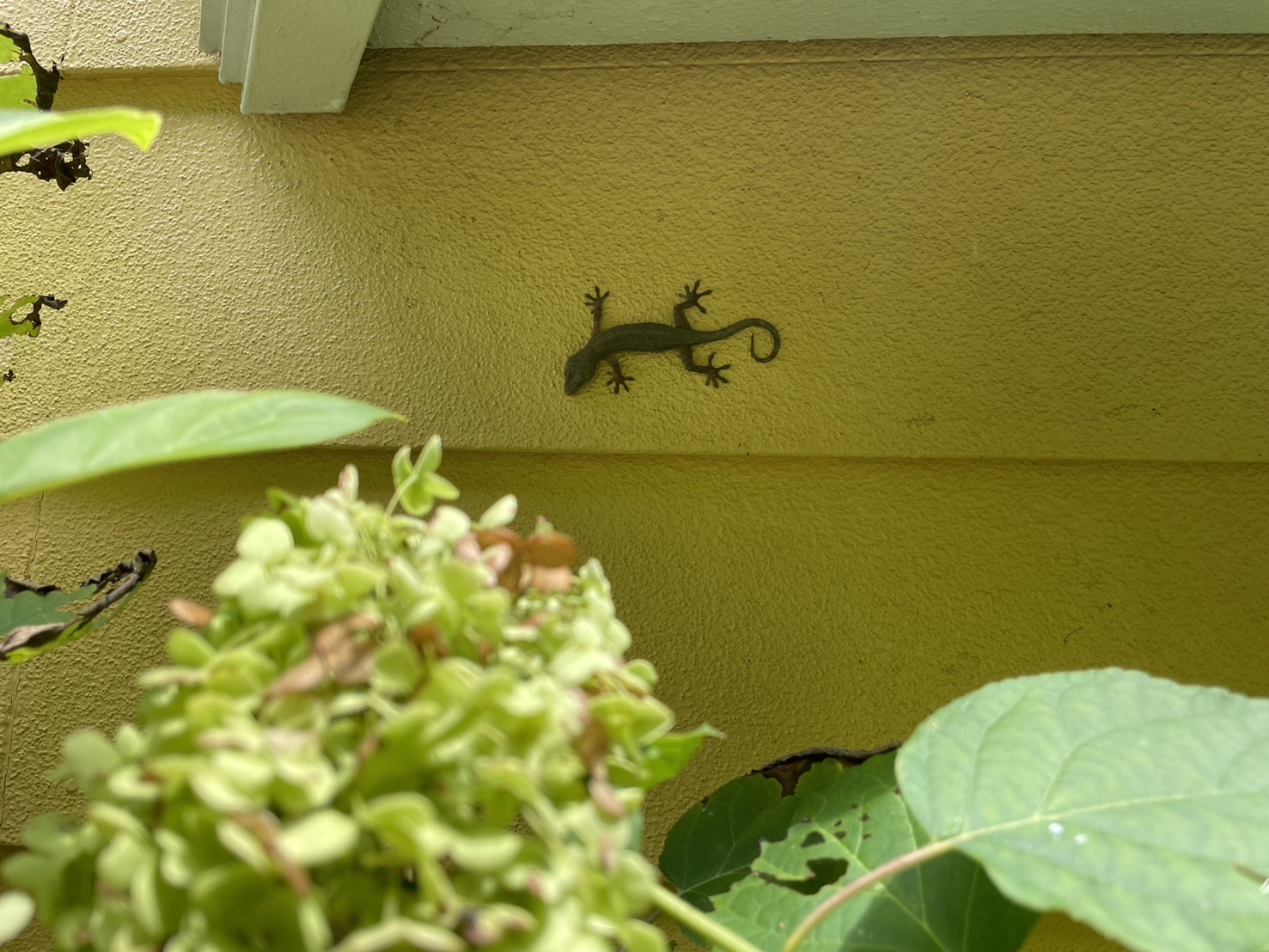 盆踊り終了後の翌日の片づけ。 大きなヤモリ君。我が家の守り神。