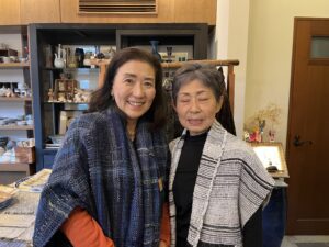 大蔵商店会の三条屋大谷商店で、展示販売していました。二階堂にお住まいの裂き織り作家の国分さんの作品です。一目惚れしたのは、このコート。着物を裂いて糸にして・・・という工程を伺っただけで興味深く、こんな素敵な色合いのコートが作れるなんて、と感動。