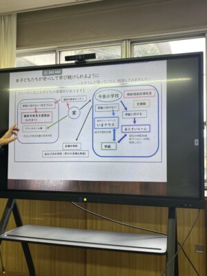 次に、校長先生並びに担当の先生から、当小学校のフリースペース『いまテラス』について丁寧に説明していただき、実際に部屋を見せて頂くことができました。