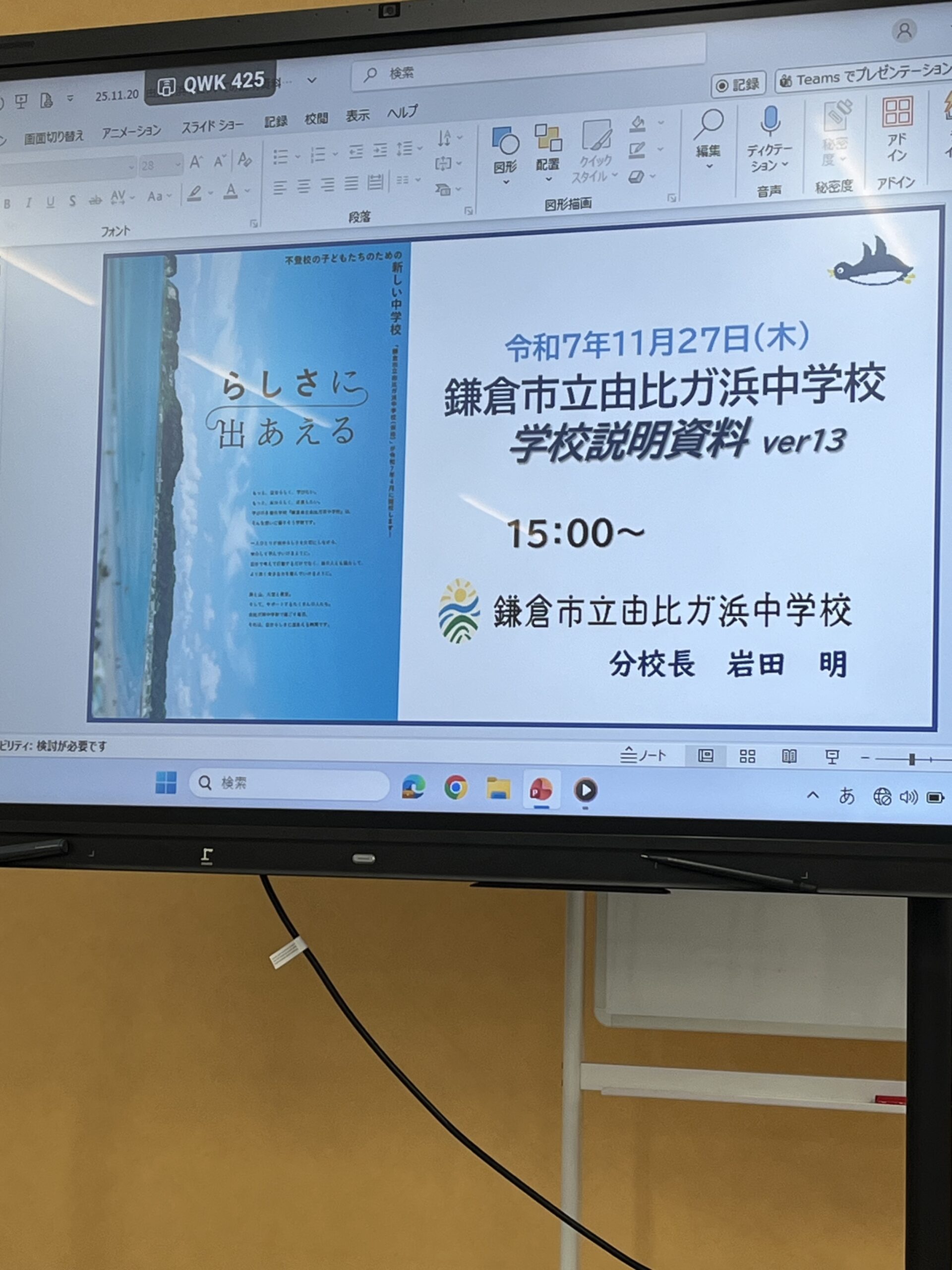 鎌倉市議会教育福祉常任委員会、給食・フリースペース・由比ヶ浜中学校視察