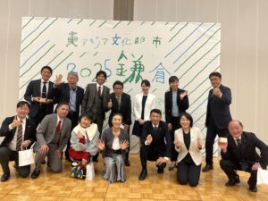 主に、文化芸術分野において様々な交流事業を通して友好の絆を深めてきたとする大韓民国安城市長をはじめ計能団の方達が来鎌されて、共にレセプションを楽しく過ごすひと時となりました。