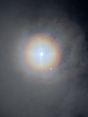 月が傘をさして