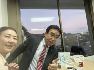 ゆめみらい鎌倉の控室からは夕焼けが広がって・・・と言っているうちに、みるみる夕焼けが暗闇に。