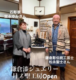 同じ谷戸に住む住民としても親しい鎌倉彫伝統工芸士である木彫作家としても活躍されている松永聖士さん、石彫作家の宮永ゆみさんご夫妻が、工房を住まいに隣接してオープンされました。