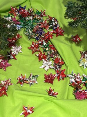 残念ながら出席できない方から、折り紙でおった沢山の星を頂き、ツリーの下に飾り、おかげ様で明るくツリーが引き立ちました。そうした参加の仕方もあるのだ、と感謝しました。