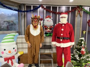 会長と副会長の一人には、毎年サンタクロースとトナカイに扮してもらい、会場を盛り上げる役をしてもらっています。