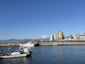 江の島はすぐそこ、富士山が見える絶景の港です。