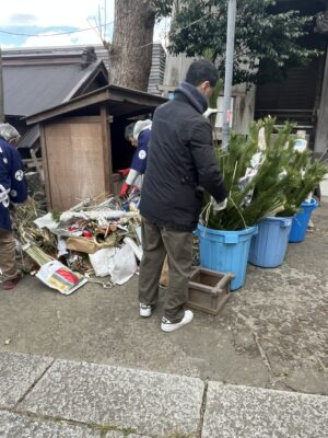 神社には、次々といつもなら海岸で行われるはずのどんど焼きで焚くはずのお飾りや門松が地域の方達から持ち込まれるのを見ながら、本殿に入り、神事と神楽に参列いたしました。