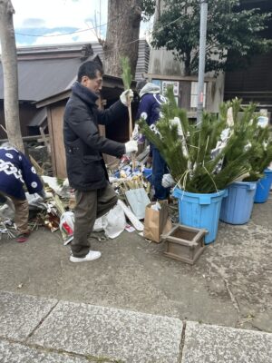 神社には、次々といつもなら海岸で行われるはずのどんど焼きで焚くはずのお飾りや門松が地域の方達から持ち込まれるのを見ながら、本殿に入り、神事と神楽に参列いたしました。